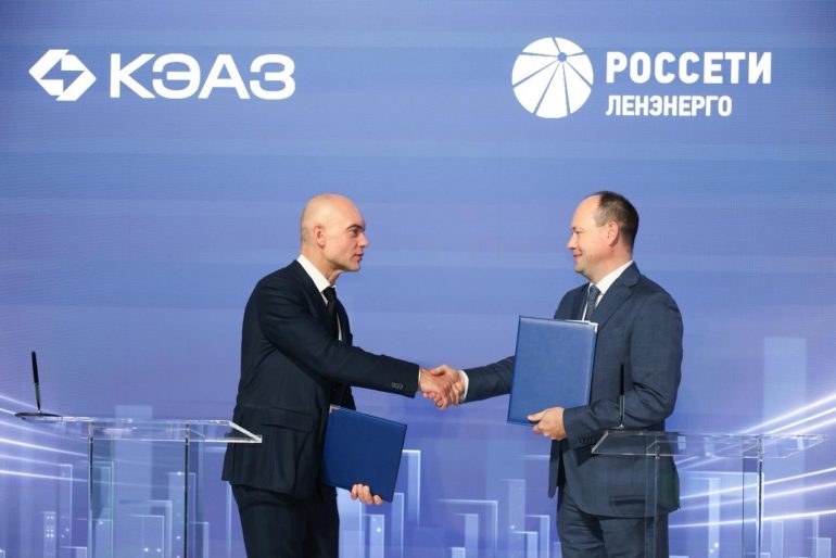 На полях Международного форума «Российская энергетическая неделя-2025» заключено соглашение о сотрудничестве между ПАО «Россети Ленэнерго» и АО «Курский электроаппаратный завод» (КЭАЗ). Документ скрепили подписями генеральный директор электросетевой компании Игорь Кузьмин и председатель Совета директоров группы компаний КЭАЗ Андрей Канунников.