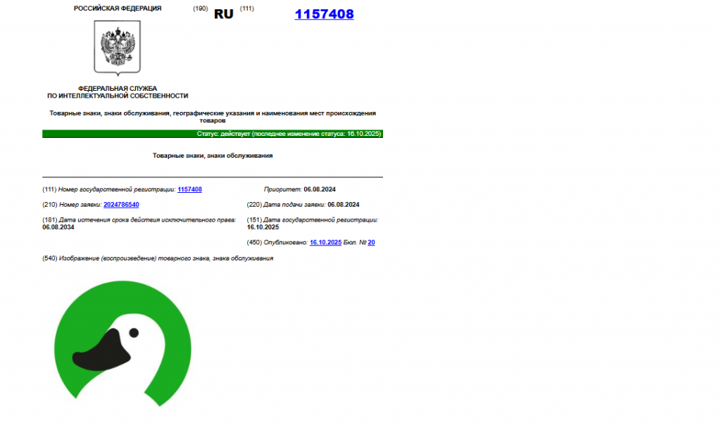 Роспатент зарегистрировал новый товарный знак компании «ДубльГИС», контролирующей одноименный сервис. Согласно данным из открытого реестра, знак был подан на регистрацию 6 августа 2024 года, а официально зарегистрирован 16 октября 2025 года под номером 1157408. Правообладателем выступает ООО «ДубльГИС».