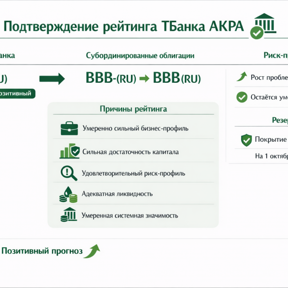 Аналитическое кредитное рейтинговое агентство АКРА подтвердило кредитный рейтинг ТБанка и его облигаций на уровне АА(RU), одновременно улучшив прогноз со «стабильного»...